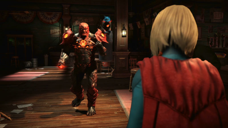 اولین تریلر گیم پلی بازی هم بعد از آن منتشر شده که شخصیت های اصلی بازی را که در آن با هم با یکدیگر مبارزه میکنند به تصویر میکشد. این شخصیت ها شامل Supergirl، Aquaman، Gorilla Grodd، Black Manta، Red Lantern Atrocitus و شخصیت های اصلی داستان یعنی SuperMan و Batman هستند. نکته جالب دیگر هم در مورد فضای بازی و مکان انجام مبارزات است که کاملاً شکل داستانی فیلم ها را دارد و شما در شهر های Metropolis، Gotham City و Atlantis با دشمنان و حریفان خود از دسته شیاطین و یا ابرقهرمان ها مبارزه خواهید کرد.