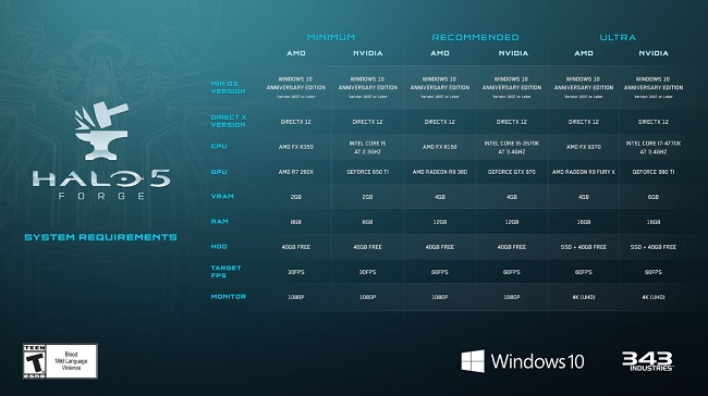 هفته گذشته بود که مایکروسافت سیستم موردنیاز و پیشنهادی برای اجرای بازی Halo 5: Forge بر روی کامپیوترهای خانگی را معرفی کرد. اما امروز مایکروسافت و استودیو بازی سازی 343 Industries جزییات تازهای از سه سیستم موردنیاز و پیشنهادی جدید منتشر کردند که اطلاعاتی از پردازندهها و کارتگرافیکهای مناسب شرکت AMD برای اجرای این بازی در اختیار ما قرار میدهد. در ادامه پس از آشنایی با این جزییات، ویدیوی گیم پلی از این بازی را هم میتوانید مشاهده کنید.