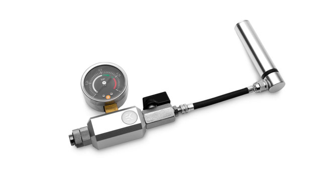 ابزار تست نشتی EK-Leak از یک بلاک آلومینیومی برش داده شده توسط ماشین CNC، یک گیژ (درجه سنج) و یک پوار تشکیل شده است. کافی است کاربر پس از نصب خنک کننده اوپن لوپ و پیش از ریختن مایع کولانت داخل آن، دستگاه را از طریق فیتینگ G1/4 به آن متصل کند. سپس باید از طریق پوار یا همان پمپ دستی، هوا را به میزان مجاز وارد شبکه خنک کننده کرد.