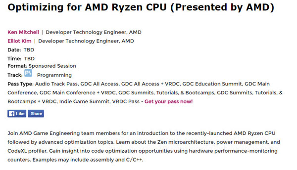 AMD در دعوتنامه مورد اشاره از دعوت کنندگان خواسته تا "به تیم مهندسی گیمینگ AMD برای معرفی پردازنده های اخیراً رونمایی شده AMD Ryzen، پس از ارائه مباحث مربوط به بهینه سازی ملحق شوند"، به احتمال قوی "بهینه سازی ها" به تشریح قابلیت های جدید برای توسعه دهندگان اشاره دارد. همچنین عبارت "اخیراً معرفی شده" بسیار حائز اهمیت است و احتمالاً نشان می دهد پیش از برگزاری GDC این پردازنده ها از سوی AMD رونمایی می شوند.