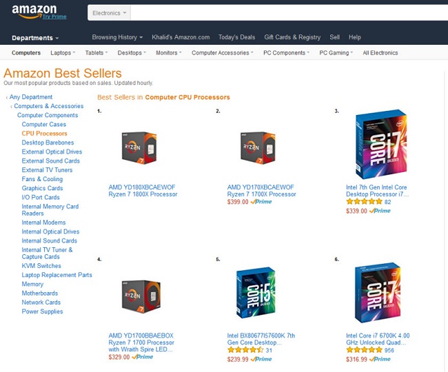 AMD یکبار دیگر موفق شد از طریق تبلیغات با سرعت باورنکردنی چنین ذهنیت قوی را به خریداران القا کند که تنها در مرحله پیش فروش پردازنده های Ryzen 7 1700X ،Ryzen 7 1800X و Ryzen 7 1700 به لیست پرفروش ترین های فروشگاه Amazon راه یابند و حتی i7 7700K اینتل را پشت سر بگذارند. هرچند به دلیل اینکه تنها دو کمپانی اینتل و AMD پردازنده رده مصرف کننده تولید می کنند راه یابی یک یا چند محصول جدید به لیست پرفروش ترین ها چندان کار دشواری نیست، اما AMD Ryzen صرفاً در مرحله پیش فروش قرار دارد و این معجزه بازاریابی است.
