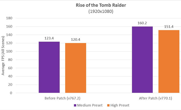 به طور مشخص اخیراً AMD با وصله ارائه شده برای بازی Rise of the Tomb Raider جهش کارایی نزدیک به 28 درصد را در تنظیمات متوسط و بالا تجربه کرده که نشان میدهد بازی مزبور در تنظیمات بالا بیشتر به پردازنده مرکزی مرکزی وابسته است. در پاسخ به چگونگی دستیابی به چنین جهش بزرگی، Crystal Dynamic چنین پاسخ داده است: