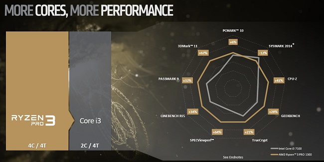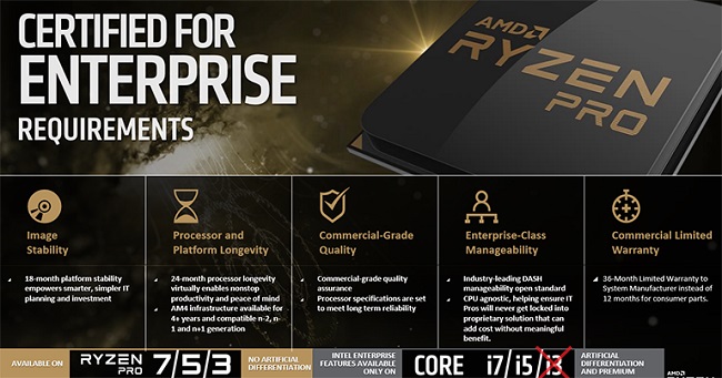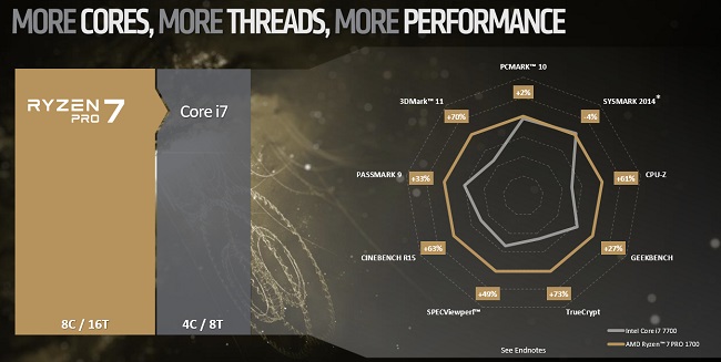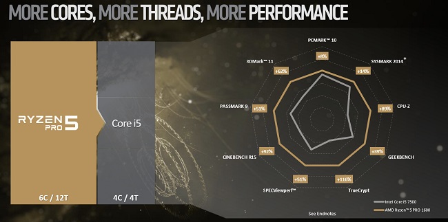 اگرچه پردازندههای Ryzen Pro قرار است به صورت رسمی از تاریخ 29 آگوست (7 شهریورماه) عرضه شوند اما AMD امروز به انتشار جزییات و ویژگیهای مهم این خانواده از پردازندههای خود پرداخت. به منظور جذب کاربران حرفهای و با کاربریهای خاص و همچنین خارج کردن بازار از دست خانواده پردازندههای vPro اینتل، AMD نیاز دارد در محصولات Ryzen Pro، علاوه بر امنیت عالی، پایداری و اعتماد پذیری بالایی را هم فراهم آورد. کمپانی سازنده مدعی است که استفاده از هستههای پردازشی Zen در پردازندههای Ryzen PRO سبب شده است که این محصولات نسبت به نسل پیشین خود تا 52 درصد سریعتر باشند. ممکن است استفاده از تعداد بیشتری از هستهها و رشتههای پردازشی و همچنین قیمت پایینتر نسبت به محصولات مشابه اینتل، سبب شود که پردازندههای Ryzen PRO با استقبال خوبی از سوی کاربران روبرو شوند.