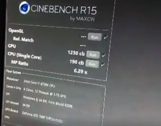 تصویر فوق اجرای بنچمارک CINEBENCH R15 با پردازنده Core i7-8700K را نشان میدهد، این تصویر از یک کامپیوتر آماده HP طی یک رویداد پشت درهای بسته گرفته شده. 8700K در تست تک هستهای امتیاز 196cb و در تست چند هستهای امتیاز 1230cb را کسب کرده است. بد نیست بدانید Core i7-8700K در تست تک هستهای امتیاز نزدیک به 198cb و در تست چند هستهای امتیاز نزدیک به 996cb را کسب میکند. یکبار دیگر کارایی تک هسته 8700K ضعیفتر یا نزدیک به 7700K است اما به لطف برخورداری از دو هسته پردازشی بیشتر، در تست چند هستهای عملکرد بهتری ارائه میکند.