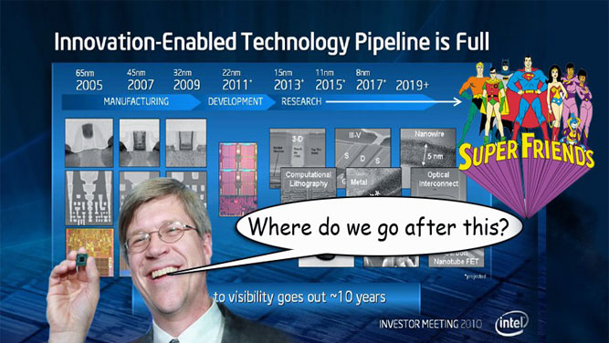 اینتل ابتدا قصد داشت سال 2016 به فناوری ساخت 10 نانومتری برای تولید محصولات خود مهاجرت کند اما بعد از تأخیرهای پیاپی، در نهایت وعده بهکارگیری آن را برای سال 2018 میلادی داد. مدیر عامل اینتل شب گذشته در نطق خود به محصولاتی پرداخت که سال ها با عرضه آنها فاصله باقی است اما کوچکترین اشارهای به فناوری ساخت 10 نانومتری نکرد و به نظر میرسد باز هم شاهد به تعویق افتادن آن باشیم.