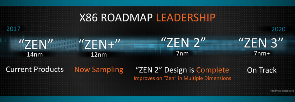 در حین اینکه AMD عرضهی نسل اول Zen به بازارهای مصرف کنندگان و سرورها را تکمیل کرده است، این شرکت هم اکنون در حال کار بر روی طراحی نسل بعدی خود شامل Zen+ و Zen 2 است.