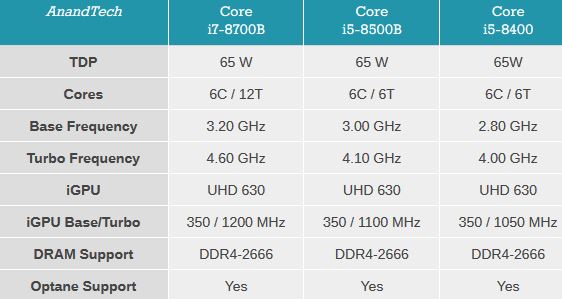 اگر بخواهیم ساده بگوییم، سری B چیزی نیست جز همان پردازنده معمولی دسکتاپ اما دیگر خبری از سوکت LGA 1151 نیست و این پردازندهها به صورت پکیجهای BGA نصب میشوند. این سری از پردازندههای اینتل برای مصارف از پیش آماده نظیر سیستمهای یکپارچه AIO ساخته شدهاند. اما آنچه که منجر به عرضه چنین پردازندههایی شده است، محدودیت فضای سیستمهای AIO در تعبیه خنک کننده برای پردازنده است. این پردازنده ها دارای همان توان طراحی گرمایی 65 وات مدلهای معمولی هستند اما به علت قابل تنظیم بودن آن، دیگر به حرارت گیرهای بزرگ نیاز نیست و AIO ها قادر هستند ظاهر شیک و باریک خود را حفظ کنند. Core i7-8700B ،Core i5-8500B و Core i5-8400B اولین پردازنده های این سری هستند. این پردازنده ها همانند نمونه های مورد استفاده در لپ تاپ ها، به برد اصلی لحیم می شوند.