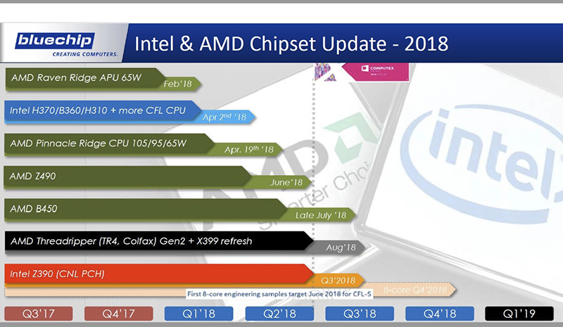 تا پیش از این شایعات و سوالات بسیاری پیرامون نسل بعدی پردازندههای AMD Threadripper و چیپست Z390 اینتل که چندین ماه است نام آن در اخبار مختلف به چشم میخورد وجود داشته است. این ویدئوی 30 دقیقهای که در یوتیوب منتشر شده مربوط به یک سمینار اینترنتی یا Webinar توسط توزیعکننده آلمانی Bluechip Computer برای شرکای تجاری خود است. در این ویدئو نقشه راه و برنامههای اینتل و AMD تا پایان سال 2018 میلادی ارائه شده است. معمولاً اطلاعات اینچنینی تا زمان عرضهی محصول تحت قرارداد NDA ( Non-Disclosure Agreement یا قرارداد عدم افشا) هستند. اما اغلب مرسوم است که شرکتهای اینچنینی شرکای تجاری خود را در جریان محصولات و پلتفرمهای جدید قرار دهند. در حالت عادی این محتوا نیز باید جزو NDA باشد اما به هر دلیلی فیلم آن بر روی یوتیوب منتشر شده است.