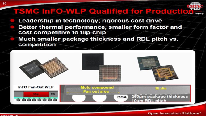 این شرکت با هدف قراردادن طیف وسیعی از گوشیها و اپلکشینها و تکیه بر فناوری InFO packaging”"، شش مدل بسته بندی جدید را معرفی کرده است. اهمییت معرفی این فناوری بسته بندی جدید به این خاطر است که به اپل امکان استفاده از انواع مختلف چیپها و رابطها را برای ساخت پردازنده میدهد. این فناوری به اپل مزیتهایی مانند ضخامت کمتر، کارایی بیشتر و تولید حرارت کمتر را در بخش پردازنده میدهد.