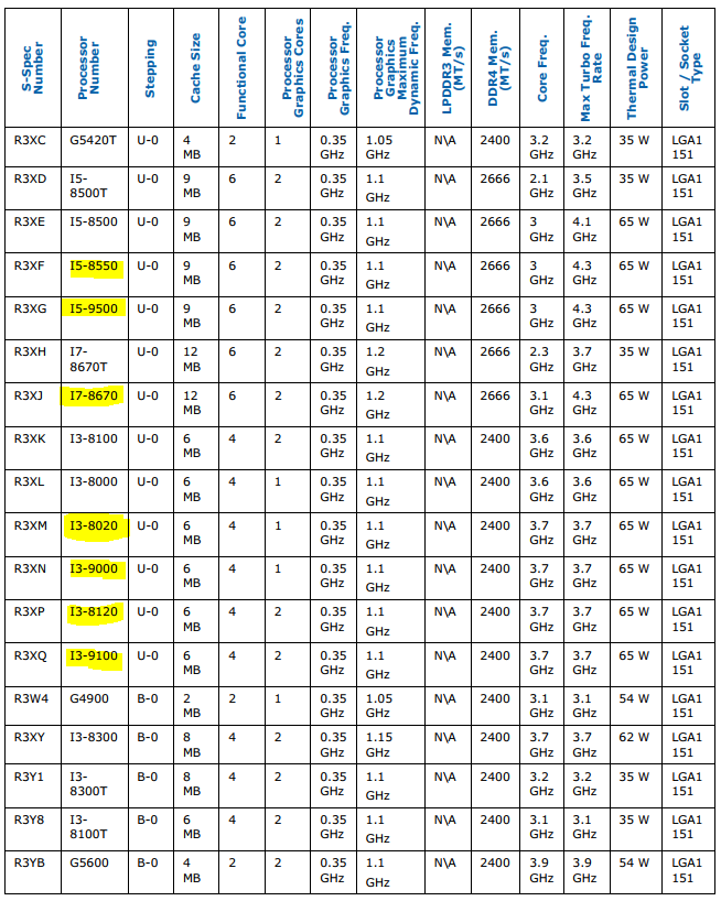 همچنین در لیست جدید یک مدل پردازنده جدید از سری Core i7 نیز یافت شود. Core i7-8670 همانند مدلهای فعلی، یک پردازنده شش هستهای است.