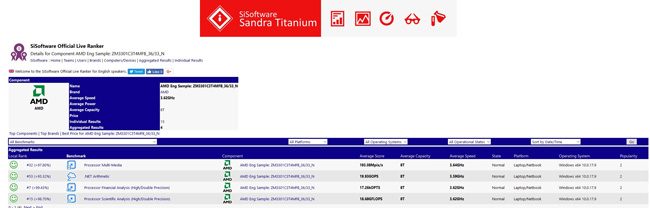 این گونه به نظر میرسد که سرانجام پردهها از روی نمونه APU-های قدرتمند سری H کمپانی AMD کنار رفته است و محصولات این کمپانی در این زمینه رویت شدهاند. نکته جالب در این زمینه این است که این نمونههای 45W دقیقاً در میان نمونههای 15W کممصرف سری U دستگاههای قابل حمل و همچنین نمونههای 65W سری G پلتفرم دسکتاپ قرار میگیرند. اسلاید اول اولین اطلاعات را در مورد بخش CPU این محصولات به تصویر کشیده و آنها را با شماره مدل ZM3301C3T4MFB_36/33_N در پایگاه داده SiSoftware Sandra نشان میدهد که البته چنین چیزی در رابطه با پایگاه داده بنچمارک 3D Mark هم وجود دارد.