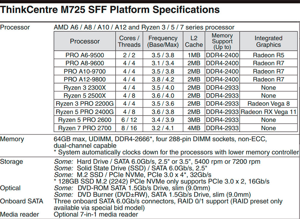 وب سایت رسمی «لنوو» (Lenovo) مشخصات یک کیس رومیزی به نام ThinkCentre M725 را لیست کرده است که مشخصات پردازندههای عرضه نشده AMD Ryzen 3 2300X و Ryzen 5 2500X را هم لو داد.
