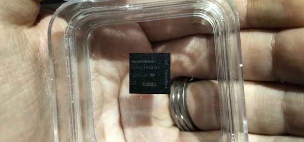 این تراشه کوچک با ابعاد 12x12x1 میلی متر (مساحت 144 میلی متر مربع)، نه تنها بسیار کوچک و نازک است، بلکه یک تراشه حافظه هم در بالاترین لایه آن قرار گرفته است.