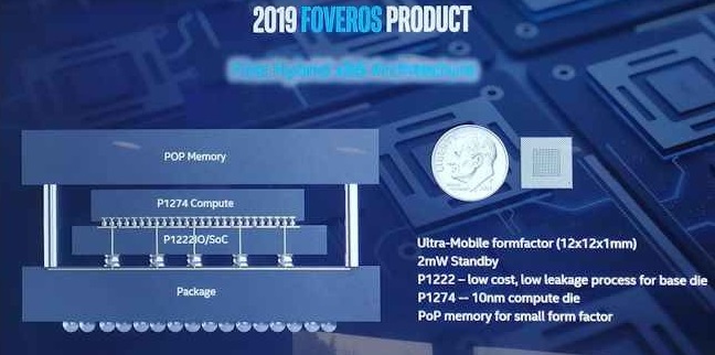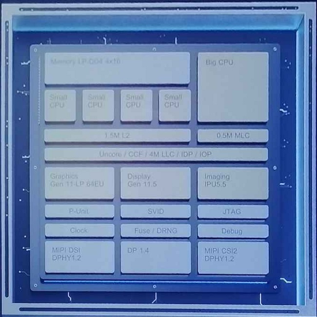 تراشه مورد بحث یک پردازنده یا اگر درستتر بخواهیم بگوییم یک SoC است که از یک هسته پردازشی بزرگ x86 و چهار هسته کوچکتر Atom بهره میبرد. این تراشه با استفاده ا فناوری موسوم به Foveros اینتل تولید میشود که در آن از یک قطعه سیلیکونی 22 نانومتری به عنوان میزبان قطعه سیلیکونی 10 نانومتری استفاده شده است. در این طراحی هستههای پردازشی با فناوری ساخت 10 نانومتری تولید میشوند و همگی درون یک قطعه سیلیکونی تعبیه شدهاند که از طریق مسیرهای ارتباطی عمودی به قطعه سیلیکونی 22 نانومتری وصل میشود. در واقع قطعه سیلیکونی 22 نانومتری بخش UnCore و I/O را در خود جای داده است.