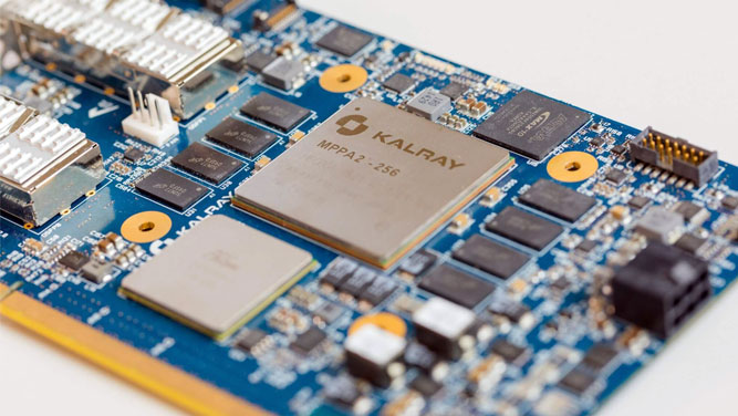 EPI برای بازار اتومبیلها و به طور ویژه اتومبیلهای خودران، به معماری مجموعه دستورالعمل VLIW کمپانی Kalray روی میآورد. Kalray یک سازنده پردازنده فرانسوی است که پردازنده چند هستهای با هسته پردازشی و ریزمعماری اختصاصی را خود تولید میکند. تصویر بالا پردازنده نسل دومی فعلی این سازنده فرانسوی به نام MPPA2-256 Bostan2 را نشان میدهد که حاوی 288 هسته؛ شامل 256 هسته در قالب 16 دسته، هر یک با یک هسته مدیر مجزا و یک واحد چهار هستهای برای کنترل امور داخلی پردازنده است. این SoC دارای یک کمک پردازنده 128 هستهای برای رمزنگاری و دو تولید کننده اعداد تصادفی برای افزایش امنیت است. در واقع میتوان گفت MPPA2-256 Bostan2 چیزی میان یک پردازنده مرکزی و یک پردازنده گرافیکی است که برای استفاده در اتومبیلها مناسب به نظر میرسد.