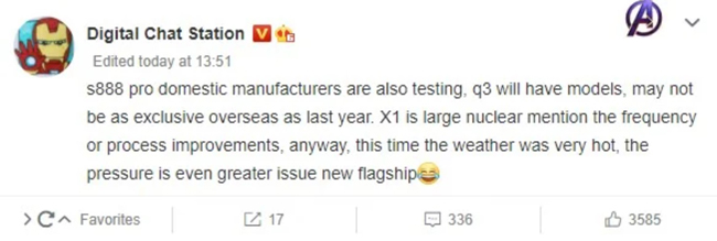 روز گذشته افشاگر معروف چینی بهنام Digital Chat Station در شبکه اجتماعی Weibo فاش کرده که کوالکام در حال کار بر روی اسنپدراگون 888 پرو است و در حال حاضر این تراشه مراحل آزمایشی خود را طی میکند.