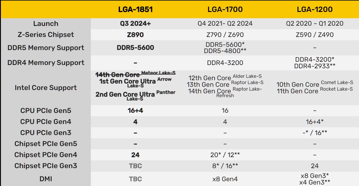 بر اساس تازهترین رشته پستهای یک افشاکننده معتبر اطلاعات، اینتل قصد دارد تا سال 2026 همچنان از پلتفرم LGA-1851 استفاده کرده و حداقل سه نسل متفاوت (با فرض بر اینکه چرخه یک ساله معرفی محصولات خود را همچنان ادامه دهد) پردازنده برای آن عرضه کند.