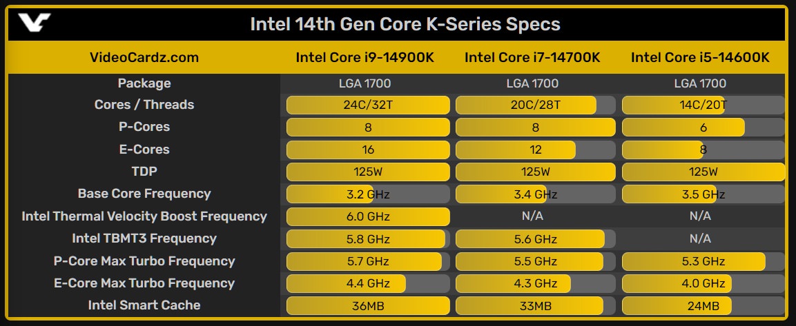 تمام مدلهای ذکر شده دارای TPD 125 وات بدون قفل هستند، این بدان معناست که قابلیت اورکلاک را داشته و این رقم ممکن است افزایش یابد. مدلهای سری غیر K احتمالاً سال آینده و در جریان CES 2024 با TDPهای 65 وات و پایینتر معرفی میشوند.