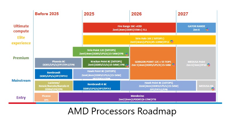 جذابترین بخش این نقشهراه مربوط به سال ۲۰۲۷ است؛ جایی که دو خانواده جدید از معماری Zen 6 معرفی خواهند شد: Gator Range و Medusa Point.