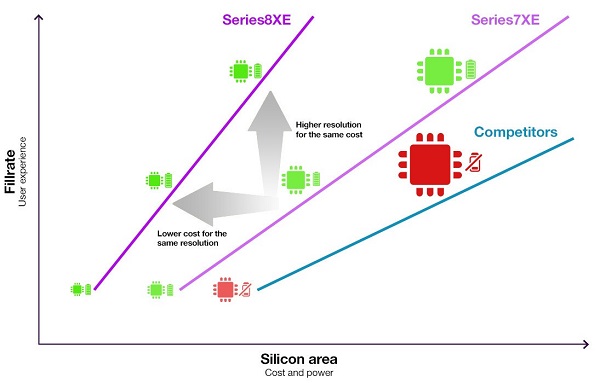 در چنین وضعی، شرکت Imagination Technologies، از سازندگان خوشنام و شناخته شده پردازشگرهای گرافیکی موبایل، نسل قدرتمندتر و بهینه تری از پردازشگرهای خود را تحت سری PowerVR Series8XE برای گوشیهای و دیگر وسائل میان رده معرفی کرد. PowerVR Series8XE یک ارتقای کلی برای سری Series7XE شامل بهبودهایی در معماری با هدف بهبود fillrate است. همچنین پشتیبانی از جدیدترین رابطهای برنامه نویسی گرافیکی روز دنیا از جمله OpenGL ES 3.2 و Vulkan 1.0. اضافه شده تا بتوان به بهترین نحو ممکن از منابع سخت افزاری بهره گرفت. در مقایسه با سری Series7XE، ایمیجنیشن تکنولوژی ادعا میکند سری Series8XE همان سطح از کارایی را در اندازه بسیار کوچکتری ارائه میکند. کاهش 25 درصدی پکیج Series8XE باعث شده تا هم هزینه تمام شده آن و هم میزان مصرف انرژی آن کاهش یابد.