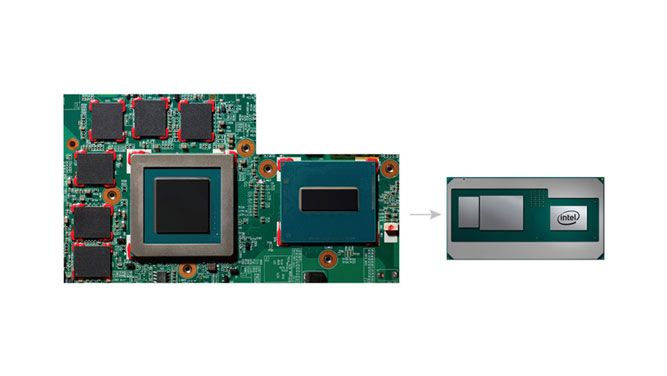 ظاهراً اینتل حاصل همکاری خود با AMD را برای اولین بار در یک مینی پی سی به خدمت خواهد گرفت. این تراشه بزرگ دارای پردازنده مرکزی چهار هستهای مبتنی بر قطعه سیلیکونی Kaby Lake-H و یک پردازنده گرافیکی مبتنی بر ریزمعماری AMD Vega در کنار حافظه HBM2 است.