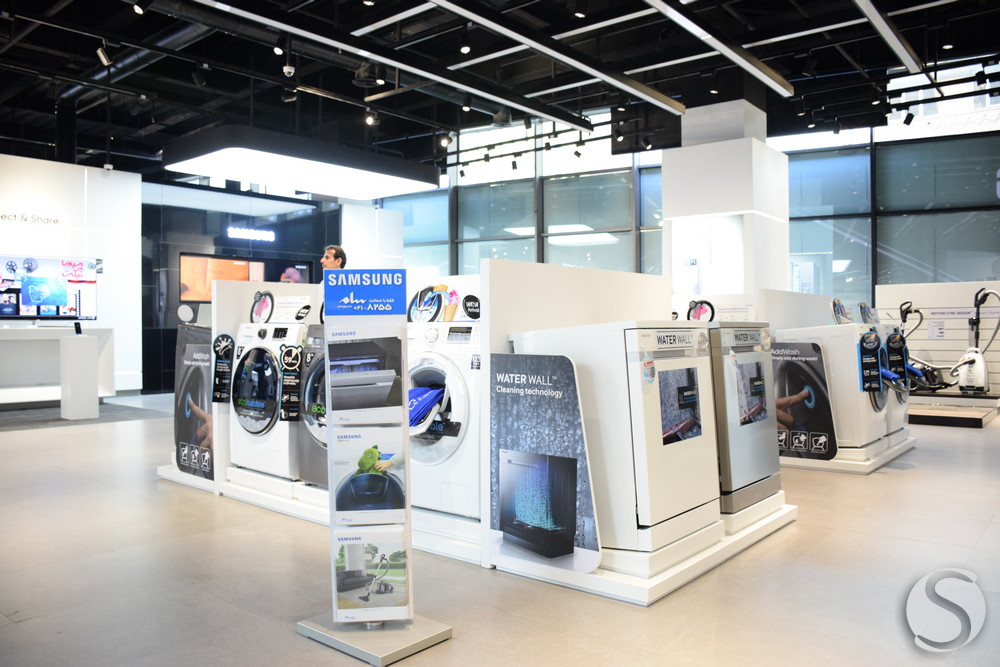 انواع ماشین های لباسشویی، کولرهای گازی، ماشین های ظرفشویی و جاروبرقی دیگر محصولات بخش لوازم خانگی سامسونگ هستند و همگی در بخش انتهایی سالن قرار داده شده اند.