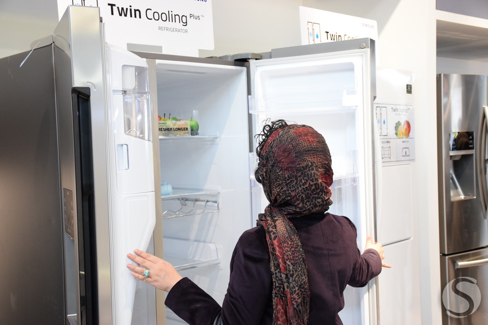 در فضای دیگری یخچال و فریزرهای سامسونگ در مدلهای متنوع چیده شده اند و خریدار می تواند از نزدیک با تمامی مدلهای موجود آشنا شود.