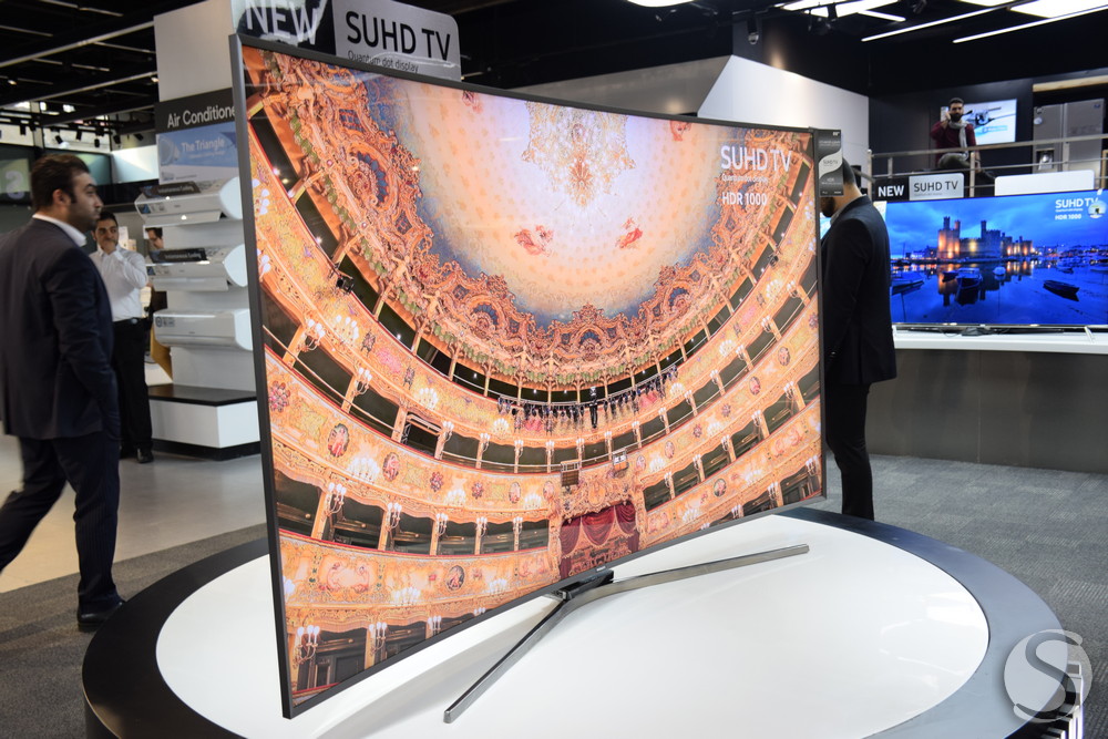 در وسط سالن، سامسونگ تلویزیون مشهور خود موسوم به SUHD TV با فناوری Quantum Dot را قرار داده است. این تلویزیون غول پیکر 88 اینچی از نوع خمیده یا Curved می باشد و طراحی آن به گونه ایست که به سرعت مجذوب ظاهر و همچنین کیفیت تصویر بی نظیر آن خواهید شد.