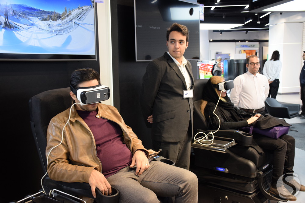 در قسمت دیگری از سالن نیز، سامسونگ با استفاده از هدست های Gear VR و گوشی های موبایل سری Note 5 و دو جایگاه مخصوص تست فضای واقعیت مجازی، امکان تست این تکنولوژی و محیط را فراهم آورده است.