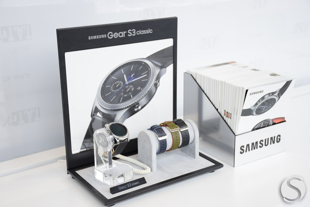 در بخش ابزارهای پوشیدنی، تازه واردهای سامسونگ یعنی سری Gear S3 Classic و Gear S3 Frontier به همراه بندهای رسمی، برای عموم به نمایش در آمده اند.