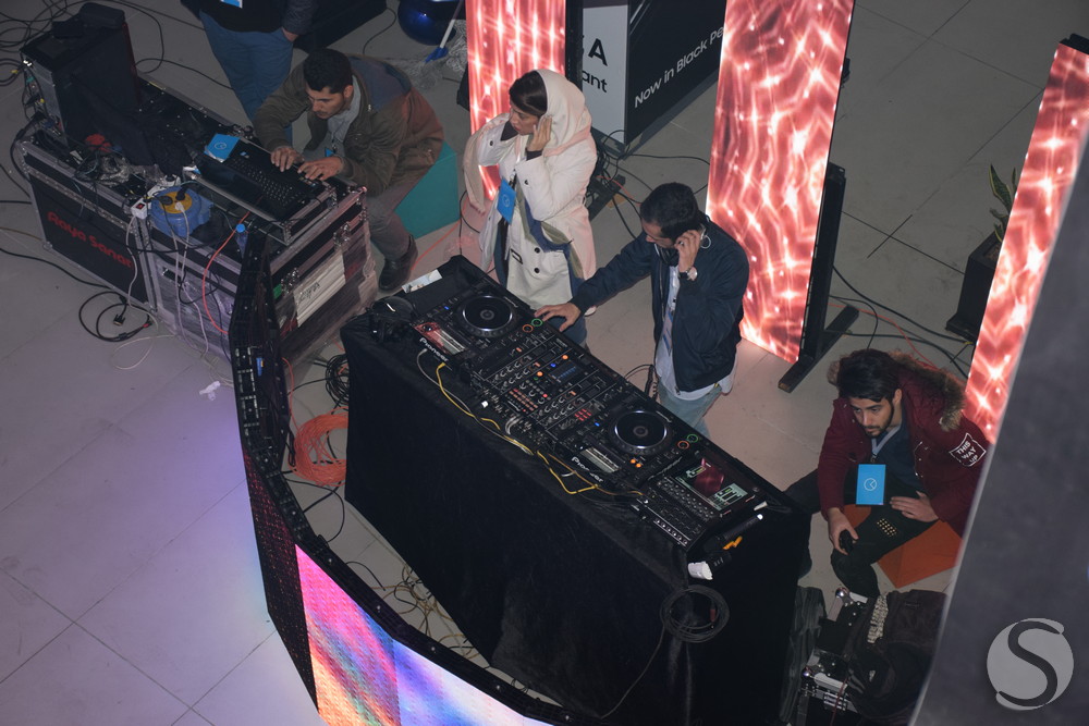 سامسونگ همچنین در طبقه منفی یک نیز با نورپردازی و موزیک، فضای جالبی را برای استقبال از فروشگاه جدیدش فراهم کرده بود.