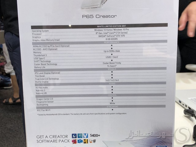از دیگر ویژگیهای عالی این لپتاپ میتوان به پشتیبانی از حافظههای پرسرعت SSD تحت رابط NVMe PCIe Gen3، پشتیبانی از حداکثر 64 گیگابایت حافظه رم DDR4 تحت فرکانس 2666 مگاهرتز، صفحه کلید با نور پسزمینه، دو اسپیکر استریو با توان دو وات و یک پورت USB 3.1 Type-C اشاره کرد. لپتاپ P65 Creator قرار است در ماه اکتبر پیشرو با قیمت 1700 یورو برای نسخه پایه و بهرهمند از کارت گرافیک GTX 1050 Ti روانه بازار شود.