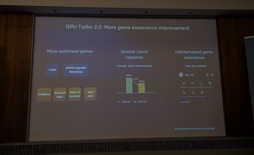 - نسخه بهبود یافته برنامه GPU Turbo 2.0 که با استفاده از الگوریتمهای جدید مصرف باتری در هنگام انجام بازیهای سنگین را کاهش داده و بازیها روان تر اجرا میشوند