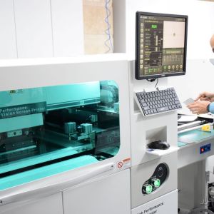 فرایند مونتاژ در این شرکت بدین صورت است که اولین دستگاه، عمل قلع کاری را بر عهده دارد و بردهای PCB ماژولها پس از چیده شدن در نوار ورودی دستگاه، وارد آن میشوند تا خمیر قلع روی نقاط اتصال و Padهای آنها تزریق شده و بتوان در مرحله بعدی، خود قطعات را روی آنها جای داده و عملیات لحیمکاری را شروع کرد.