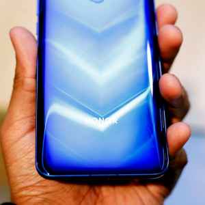 این گوشی همانطور که گفتیم طراحی شیشهای دارد. گوشیهای با بدنه شیشهای به صورت معمولی با توجه به ذات تابش نور توسط سطح شیشه طراحی خیرهکنندهای از خود به نمایش میگذارند ولی آنر وی 20 با دیگر گوشیهای از این کلاس متفاوت است. تابش خاص نور با توجه به شکست و اعوجاجاتی که در سطح زیرین بدنه این گوشی وجود دارد شرایطی را ایجاد میکند که با توجه به رنگ بدنه، طیفی از رنگ پایه با تکان دادن گوشی در جلوی منبع نور به نمایش درمیآید.