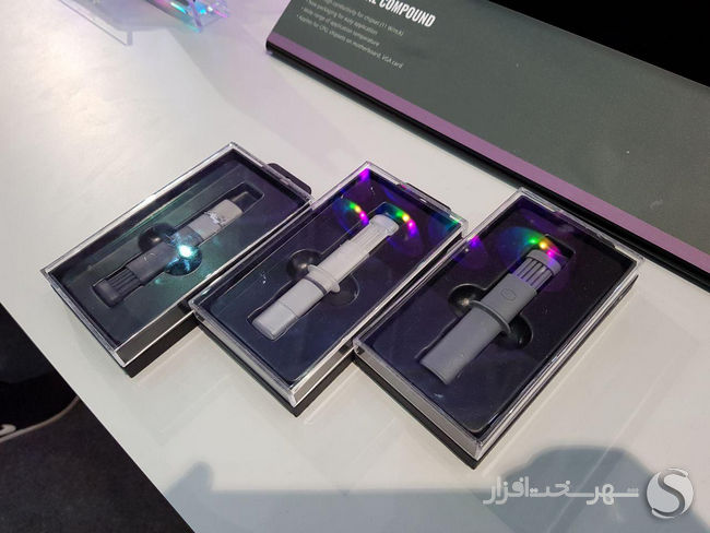 اما کولر مستر برای این نمایشگاه از تعداد خمیر حرارتی جدید هم رونمایی کرد. جدای از طراحی جدید سرنگهای این خمیرها، از لحاظ فنی هم این محصولات از رسانایی بالاتری به نسبت نمونههای قبلی برخودارند و این مقدار 11 w/m.k رسیده است. میتوان از این خمیرها برای پردازندهی مرکزی، کارت گرافیک و چیپست مادربرد استفاده کرد.