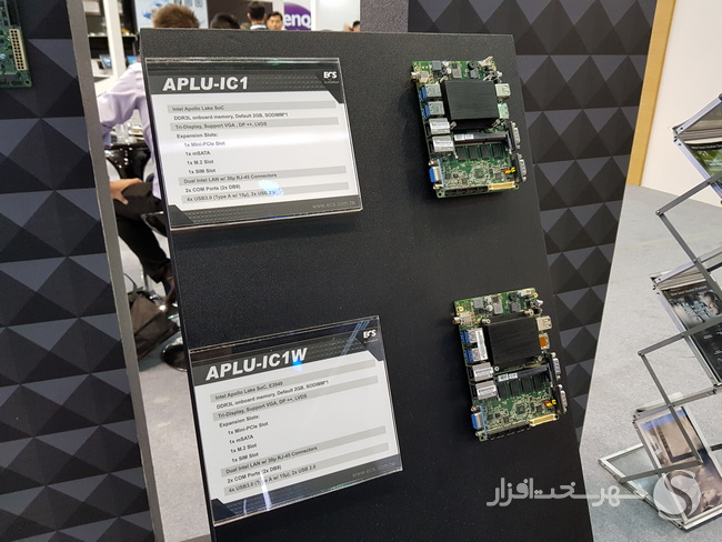 ECS همچنین MiniPC های صنعتی هم با خود به نمایشگاه آورده است. این دستگاهها که کاربری تجاری و صنعتی دارند با طراحی متفاوت و همچنین برخورداری از طیف پورتهای کاملتر از محصولات خانگی بسیار ایدهآل استفاده در شرکتها و صنایع میباشند. مدلهای APL-500 و APL-500H که به ترتیب 2 و 8 پورت COM دارند و هردو از SoC های سری Apollo Lake اینتل برخوردار میباشند.