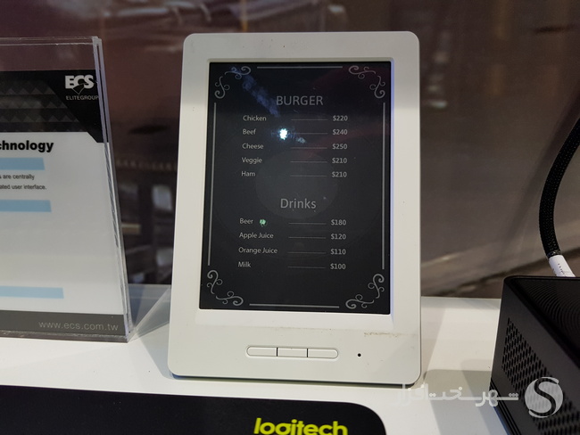 یکی دیگر از محصولات ECS که به تازگی به تولید رسیده است، Li-Ho میباشد. این دستگاه در حقیقت یک نمایشگر ePaper است که استفادههای تجاری دارد. در مدلی که ECS در نمایشگاه به نمایش گذاشته بود این دستگاه منوی رستوران را نشان میداد که برای جایگزینی با منوهای کاغذی رستورانها کاربرد دارد.