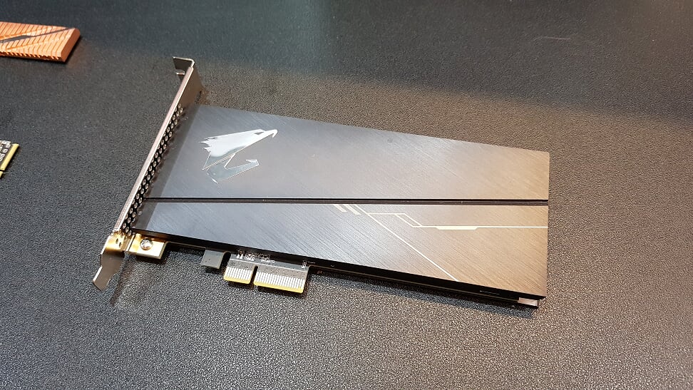 قسمت دیگری از این تور ویژه، ملاقات با SSDهای آئورس بود. بهرهگیری از 4.0 PCIe بر روی چیپست X570 سبب شده است تا بتوان به سرعتهای بالاتر دست یافت.