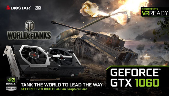 کمپانی بایوستار، از تولیدکنندگان مادربرد و کارت کارت گرافیک، دو کارت GTX 1060 جدید با الهام از بازی World of Tanks معرفی کرد. محفظه کولر این کارت ها از طراحی شبیه به زره تانک های جنگی بهره می برد و حتی بایوستار یک لوله توپ نیز برای آن در نظر گرفته است.