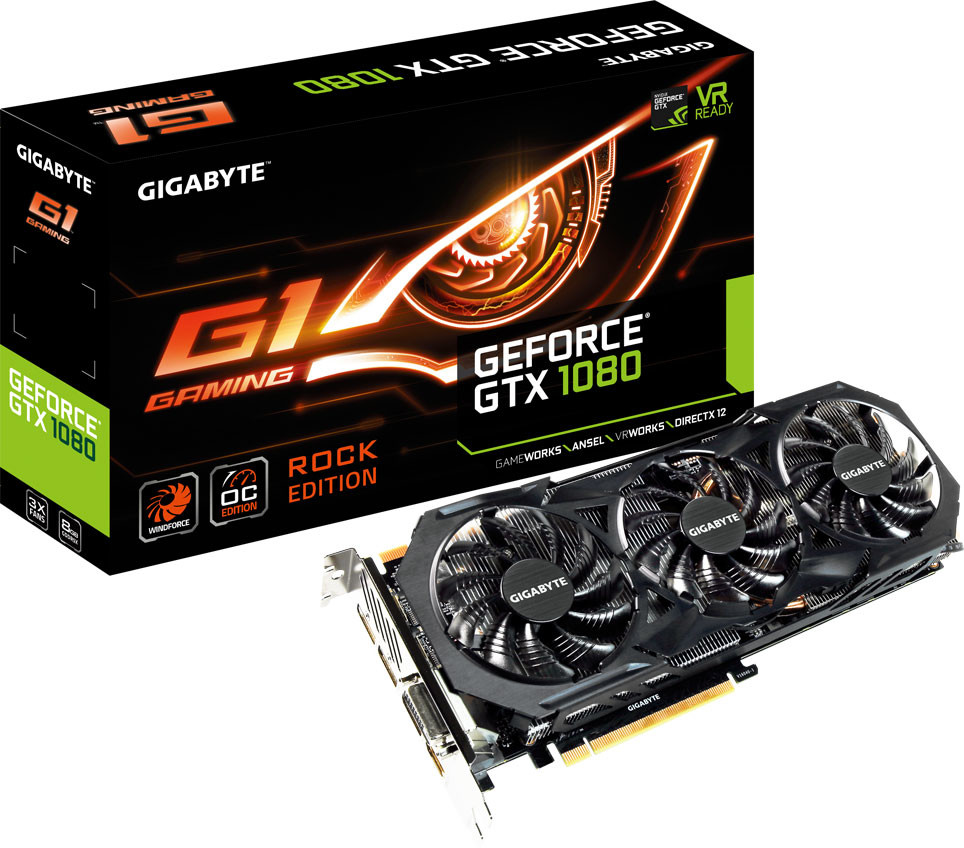 گیگابایت یک کارت گرافیک جدید به نام GeForce GTX 1080 Rock Edition (با شناسه: GV-N1080G1 ROCK-8GD) تحت سری G1.Gaming معرفی کرد. این کارت در اصل همان GTX 1080 WindForce OC اما مجهز به کولر نسل پیشین بسیار درخشان WindForce 3X است که با سری GeForce GTX 900 شاهد آن بودیم.