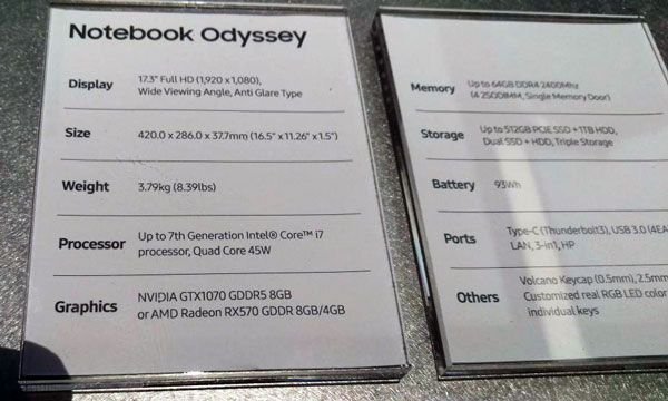 در نمایشگاه CES امسال سامسونگ با یک لپتاپ گیمینگ جدید به نام Odyssey حاضر شد که مشخصات سخت افزاری آن ذکر شده بود. نکته جالب آنجاست که در لیست مشخصات این لپ تاپ پردازنده گرافیکی Radeon RX 570 به چشم می خورد، محصولی که نه تنها تاکنون معرفی نشده، بلکه حتی پردازنده های گرافیکی سری RX500 نیز معرفی نشده اند. جالب تر اینکه به نظر می رسد Radeon RX 570 کارایی مشابه GeForce GTX 1070 ارائه می کند.