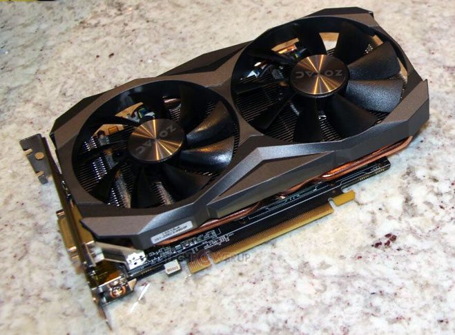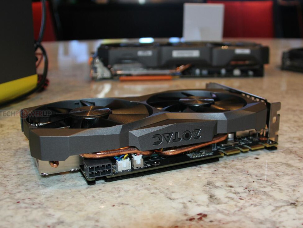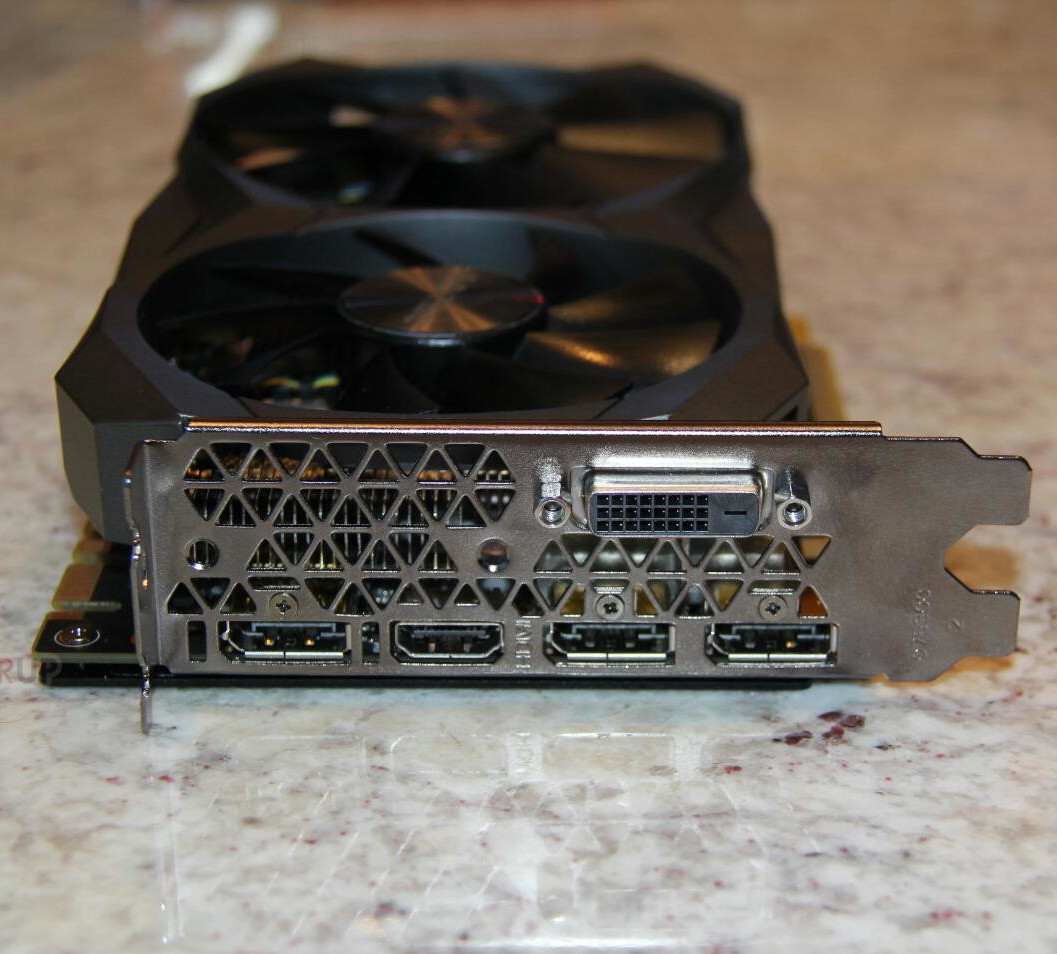 درگاه های خروجی تصویر متشکل از سه DisplayPorts ، یک HDMI و یک DVI است. این طراحی احتمالاً به ZOTAC این امکان را می بخشد تا دو هدف را در پیش بگیرد، یکی از آنها دریافت پول بیشتر از خریداران به دلیل طراحی فشرده خاص و یا در صورت شعله ور شدن بازار فروش با همان قیمت مدل مرجع است که احتمالاً خریدارن آن را به طراحی مرجع ترجیح می دهند.