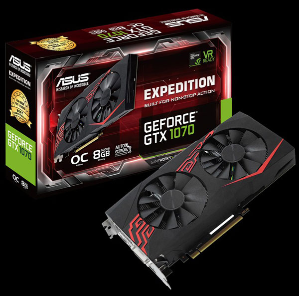ایسوس یک کارت GeForce GTX 1070 جدید معرفی کرد. این کارت از سری EXPEDITION است، سری مزبور را کارت های مقرون به صرفه اما هنوز کاستوم تشکیل می دهند. GTX 1070 EXPEDITION OC از راهکار خنک سازی اختصاصی ایسوس با برخورداری از یک جفت فن بهره می برد، همانطور که از پسوند OC پیداست این کارت به صورت کارخانه ای اورکلاک شده و می بایست کارایی بالاتر از مدل مرجع ارائه کند.