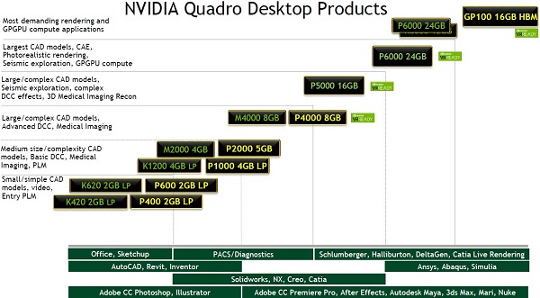انویدیا شش کارت ورک استیشن جدید متشکل از GP100 ،P4000 ،P2000 ،P1000 ،P600 و P400 تحت برند Quadro معرفی کرد. تمامی این کارت ها مبتنی بر ریزمعماری پردازنده گرافیکی Pascal هستند و به دو کارت رده بالا P6000 و P5000 ملحق می شود که پیش تر عرضه شدند.
