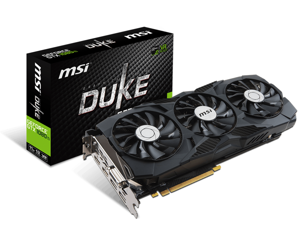 MSI یک کارت گرافیک GeForce GTX 1080 Ti جدید به نام DUKE 11G معرفی کرد. برخلاف دیگر کارت های مخصوص گیمینگ MSI، این کارت به راهکار خنک سازی TriFrozr با برخورداری از سه عدد فن مجهز است. همانطور که حدس می زنید، پسوند 11G نیز نشان از بکارگیری تراشه های حافظه GDDR5X با فرکانس موثر 11 گیگاهرتز است.