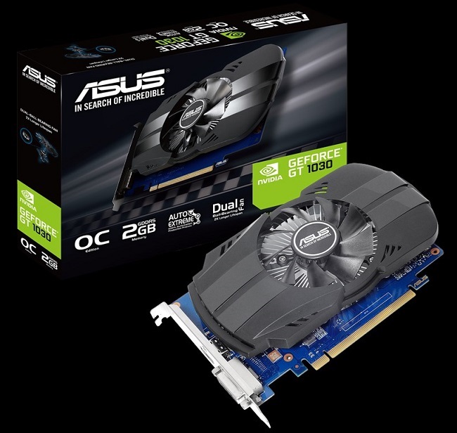 ایسوس نیز همانند دیگر سازندگان کارت های GeForce GT 1030 اختصاصی خود را برای علاقمندان عرضه می کند. این کمپانی تایوانی دست کم دو مدل متشکل از Phoenix PH-GT1030-O2G و GT1030-SL-2G-BRK عرضه می کند. تفاوت اصلی دو کارت مزبور راهکار خنک سازی آنها است.