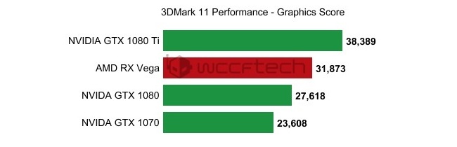 ساعاتی پیش تصویری از نتایج بنچمارک 3DMark 11 منتشر شد که امتیازهای بدست آمده توسط یکی از کارتهای سری RX Vega کمپانی AMD را فاش میکند. مقایسه این نتایج به امتیازهای مربوط به دیگر کارتهای گرافیک قدرتمند موجود در بازار نشان میدهد که این محصولات AMD قدرتی مابین دو کارت GTX1080 و GTX1080Ti را دارا هستند.