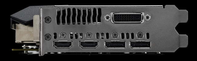 درگاههای خروجی تصویر این کارت متشکل از دو HDMI، دو DisplayPort و یک DVI است.