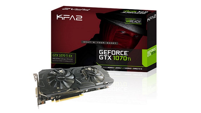 معرفی این کارت گرافیک که GeForce GTX 1070 Ti EX نام دارد ضمن انتشار تصاویر متعددی از آن، ویژگیها و قابلیتهای کارت گرافیک GTX 1070 Ti انویدیا را هم پیش از معرفی رسمی فاش میکند. KFA2 در سایت رسمی خود برای معرفی این کارت گرافیک از عناوینی نظیر "طراحی جذاب برای گیمرهای حرفهای" و "فراهم کننده سرعت کلاک عالی" استفاده کرده است.